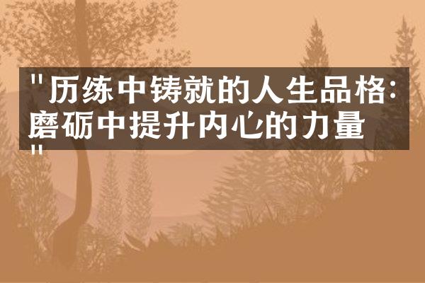 在人类文明的发展长河中,历练始终是锻造个体精神品格的核心熔炉。从先秦诸子"天将降大任于斯人"的箴言,到尼采"杀不死我的使我更强大"的哲学沉思,历史反复验证着一个真理:真正的内心力量永远诞生于磨砺的淬火之中。